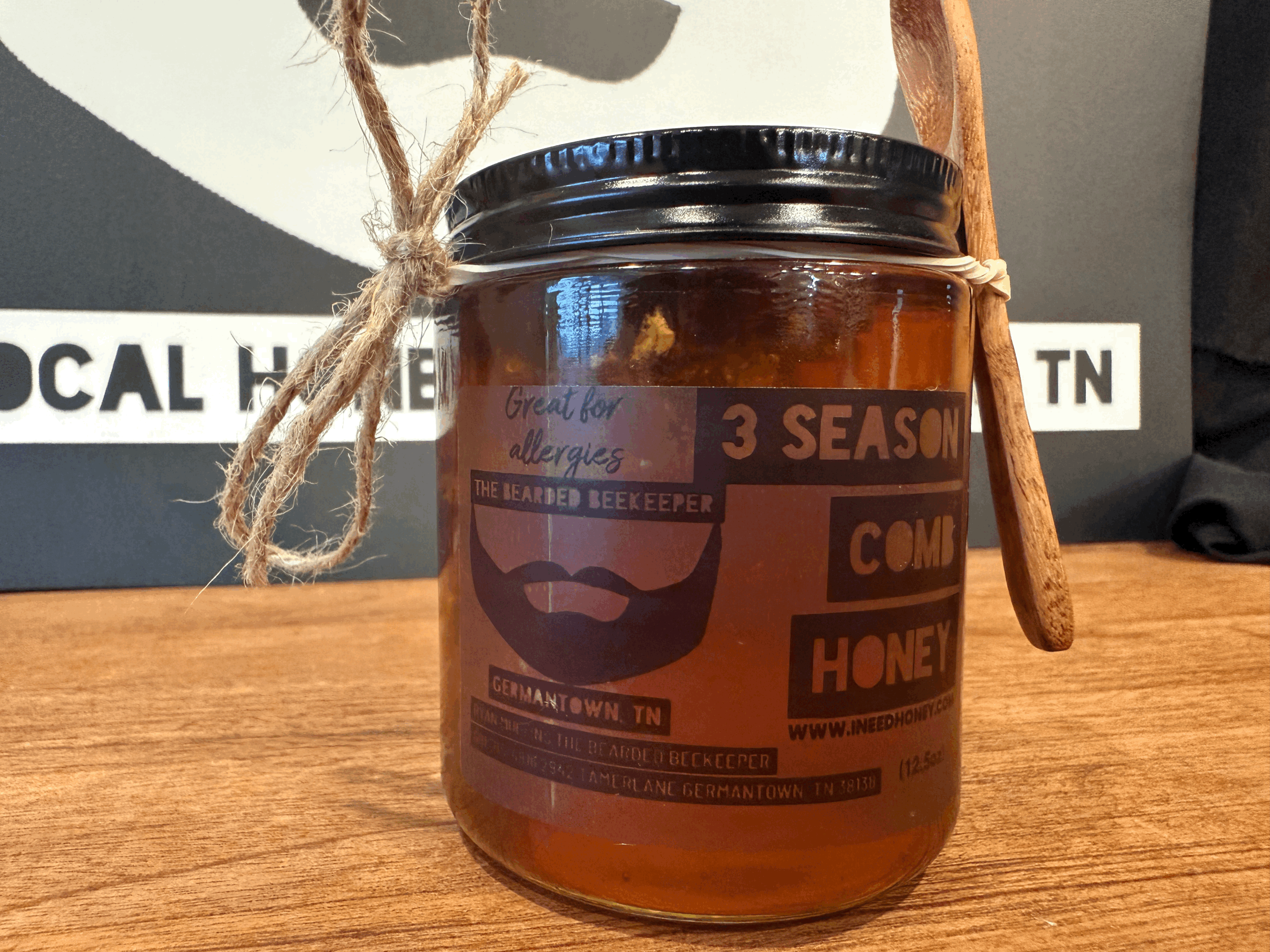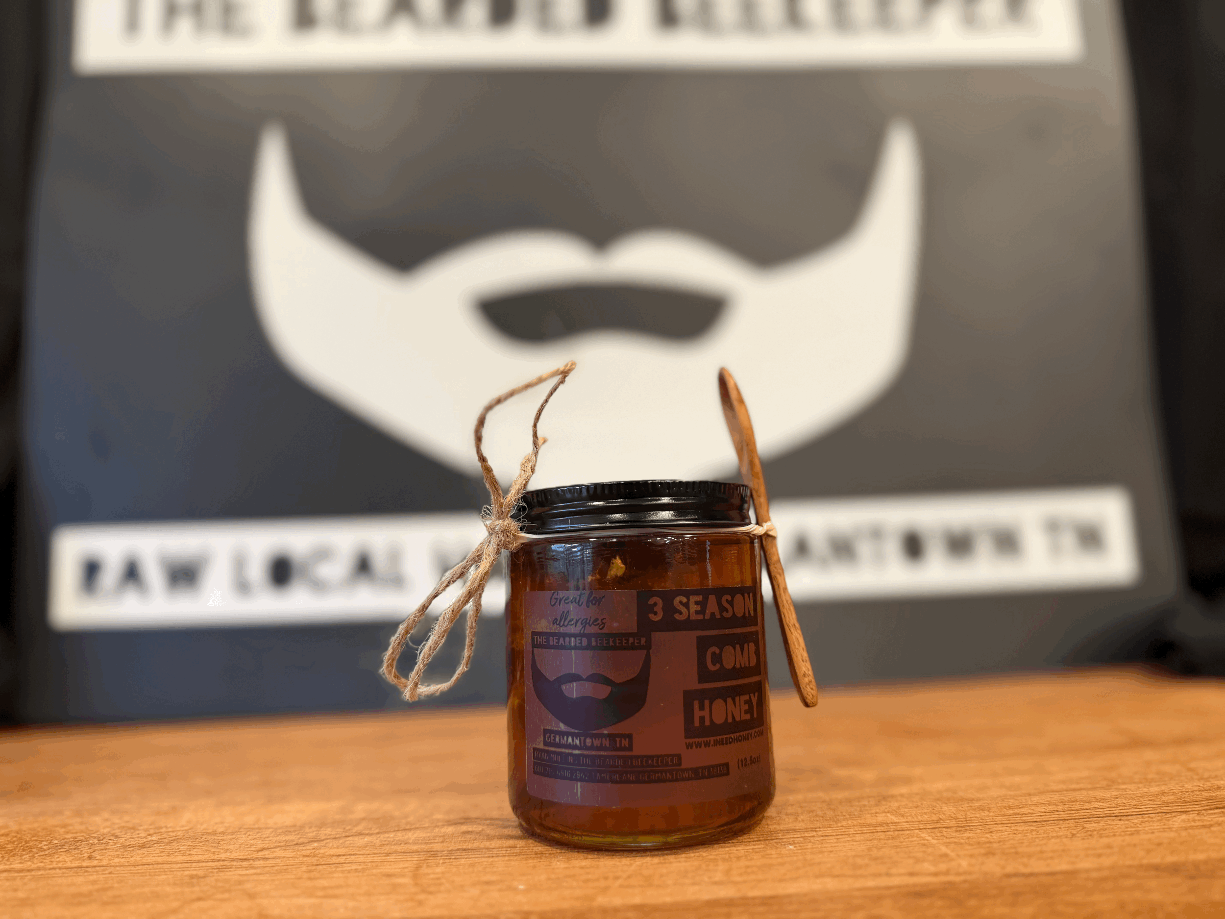 This is 12oz of raw spring and raw summer honey with a chunk of raw fall comb honey. Local honey has massive benefits for allergies and these are all three seasons of our Local raw honey. The little spoon is the exact amount to place under your tongue every morning to help boost your immune system. This is a limit supply product and will sell out.