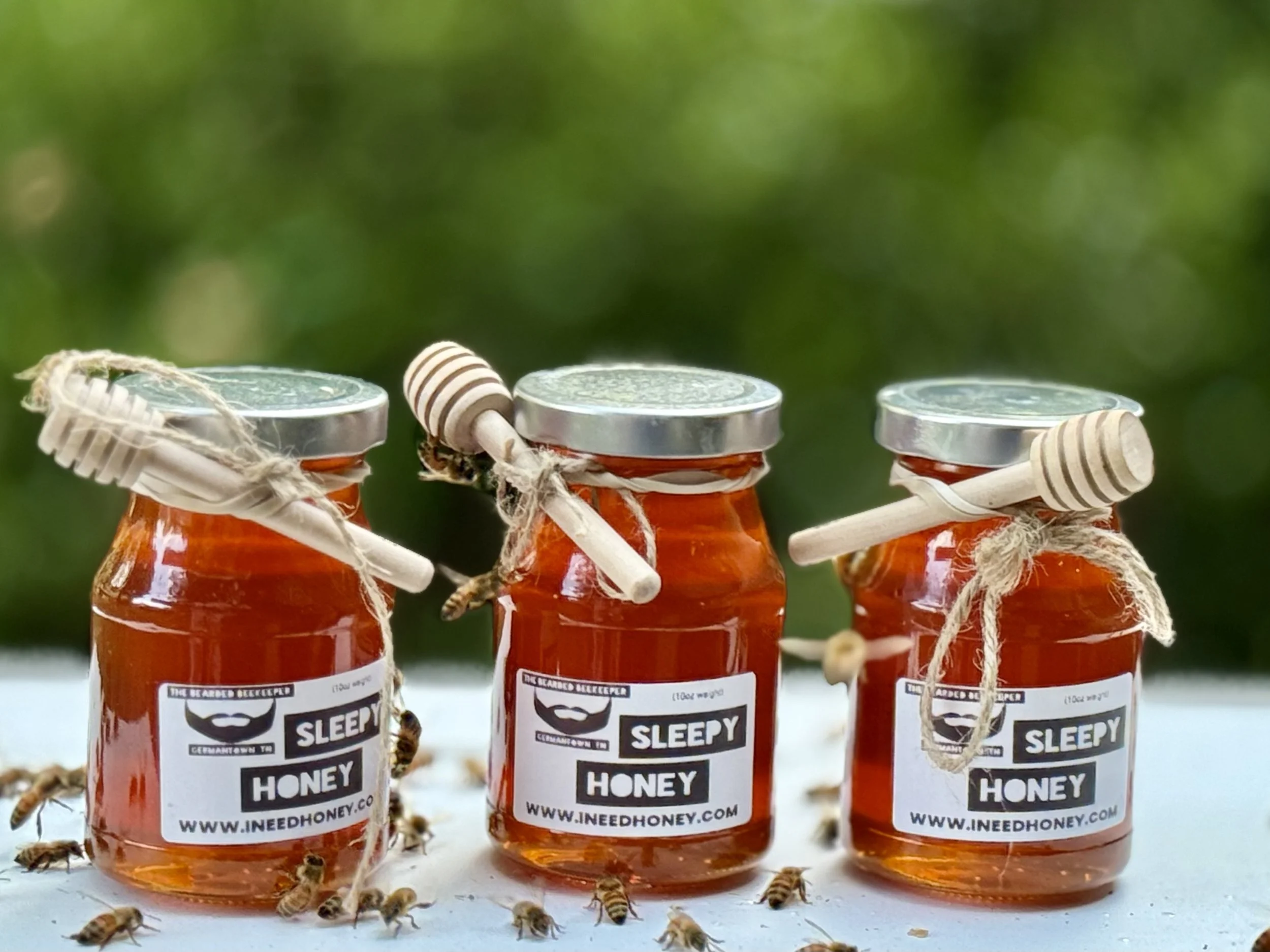 Raw local honey steeped for a time at room temperature with dried lavender buds, dried camomile heads, and sea salt.